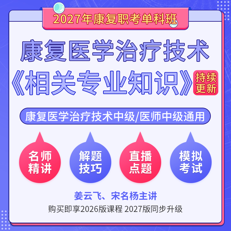 [视频]2027年康复医学治疗技术中级/康复医学(单科:相关专业知识)科目班(基础精讲+解题技巧+直播点题)
