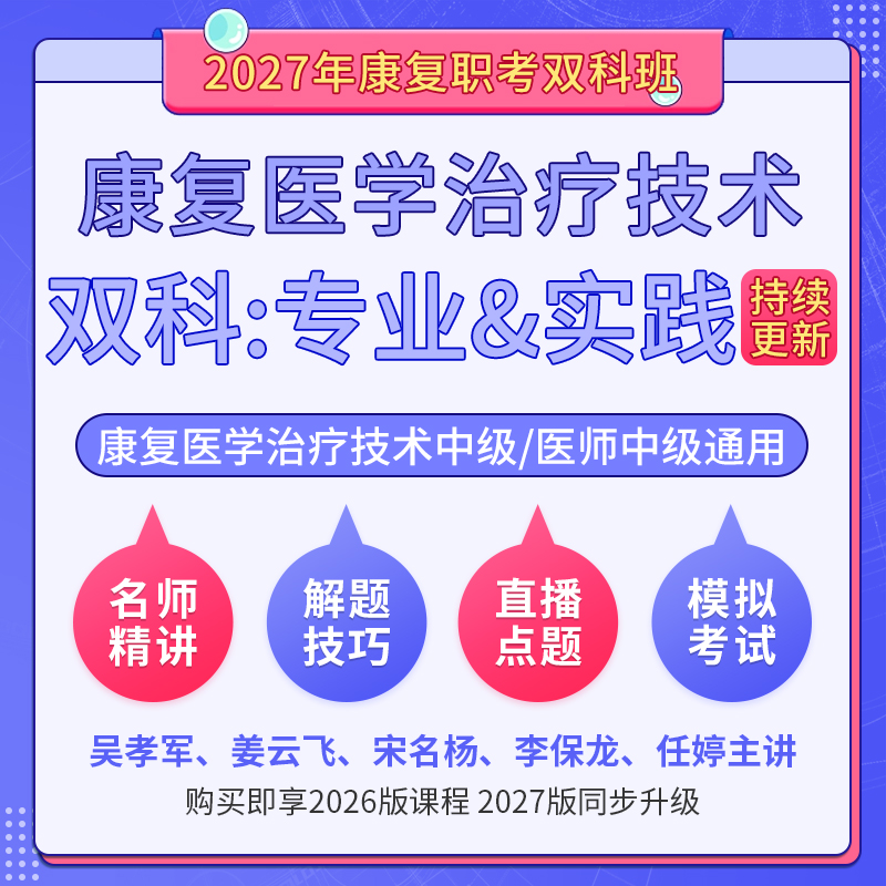 [视频]2027年康复医学治疗技术中级/医学中(单科:专业&实践)科目班(基础精讲+解题技巧+直播点题)